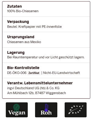 Chiasamen, ingvi, Rohkostqualität, Bio, 1000g zum Warenkorb hinzufügen