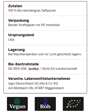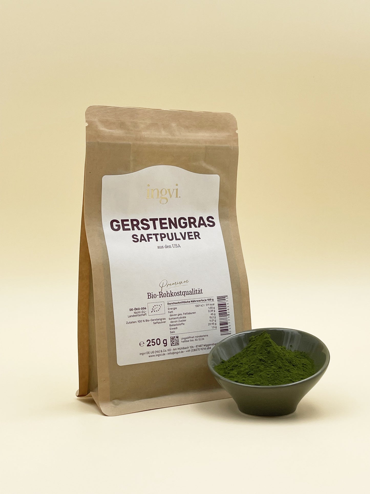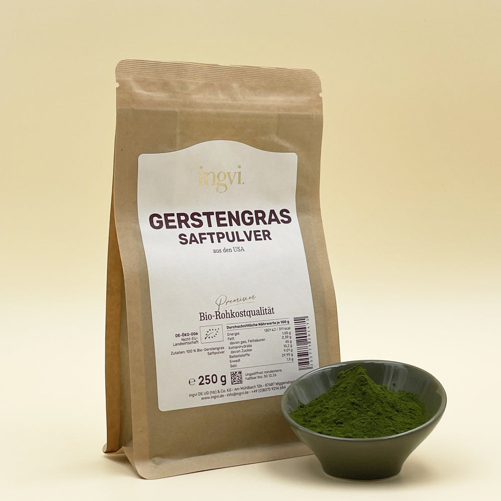 Gerstengrassaftpulver, ingvi, Rohkostqualität, Bio, 250g zum Warenkorb hinzufügen