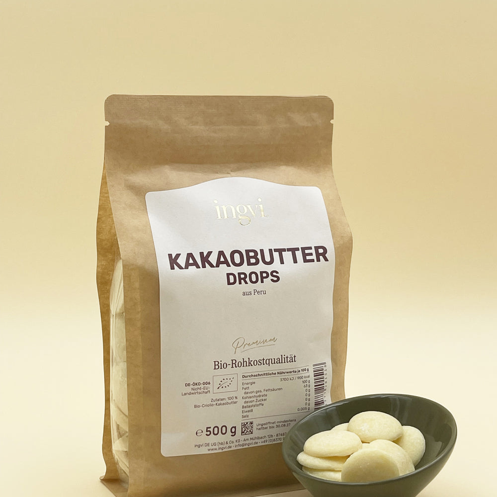 Kakaobutter Drops, ingvi, Rohkostqualität, Bio, 500g zum Warenkorb hinzufügen