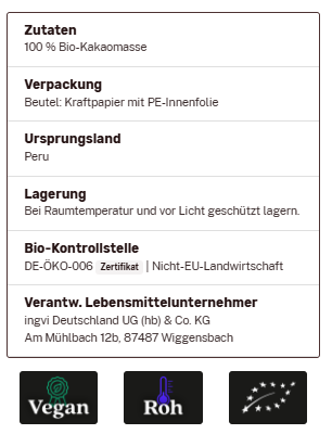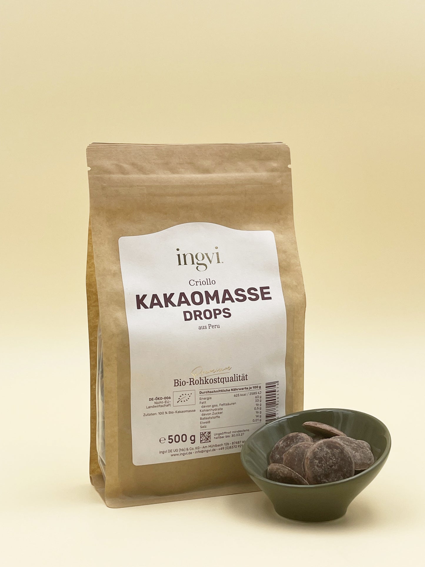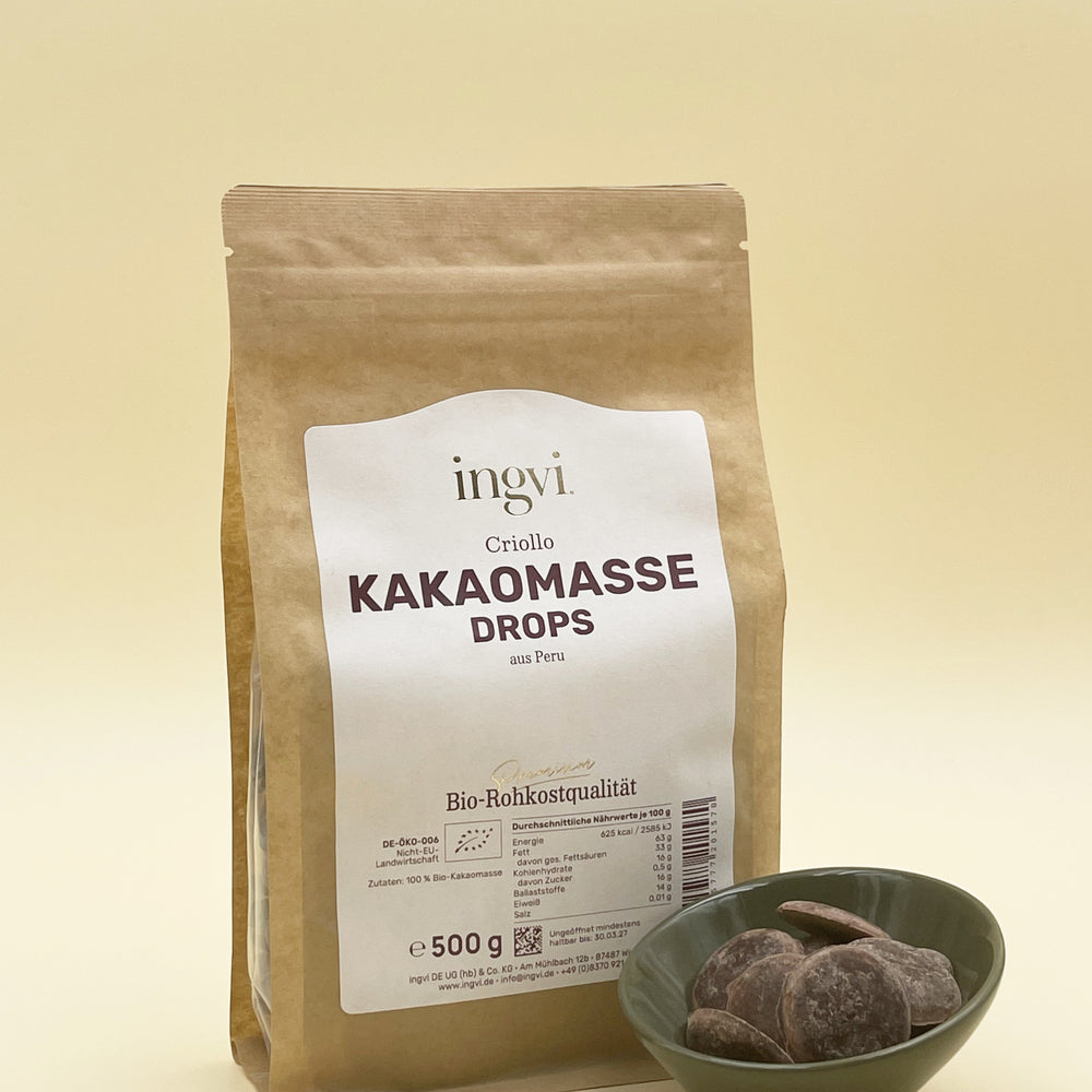 Kakaomasse Drops, ingvi, Rohkostqualität, Bio 500g zum Warenkorb hinzufügen