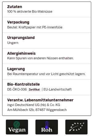 Walnüsse angekeimt, ingvi, Rohkostqualität, Bio 500g zum Warenkorb hinzufügen