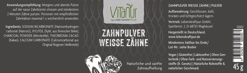Zahnpulver Weiße Zähne Pulver, Vitanur, 45g zum Warenkorb hinzufügen