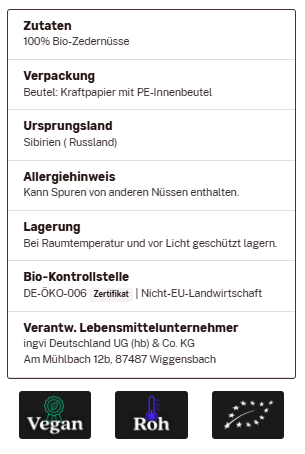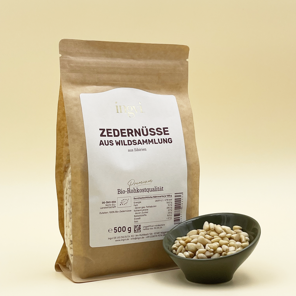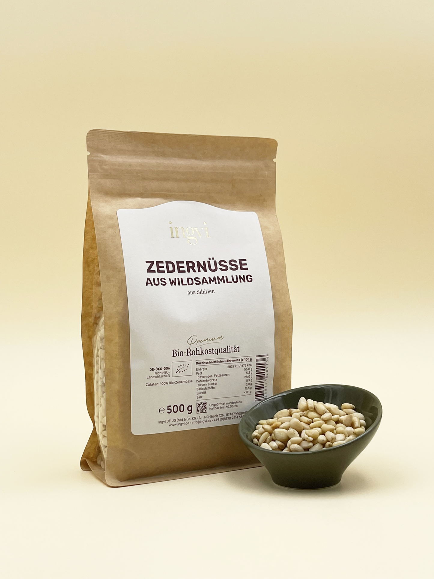Zedernüsse, ingvi, Rohkostqualität, Bio, 500g zum Warenkorb hinzufügen