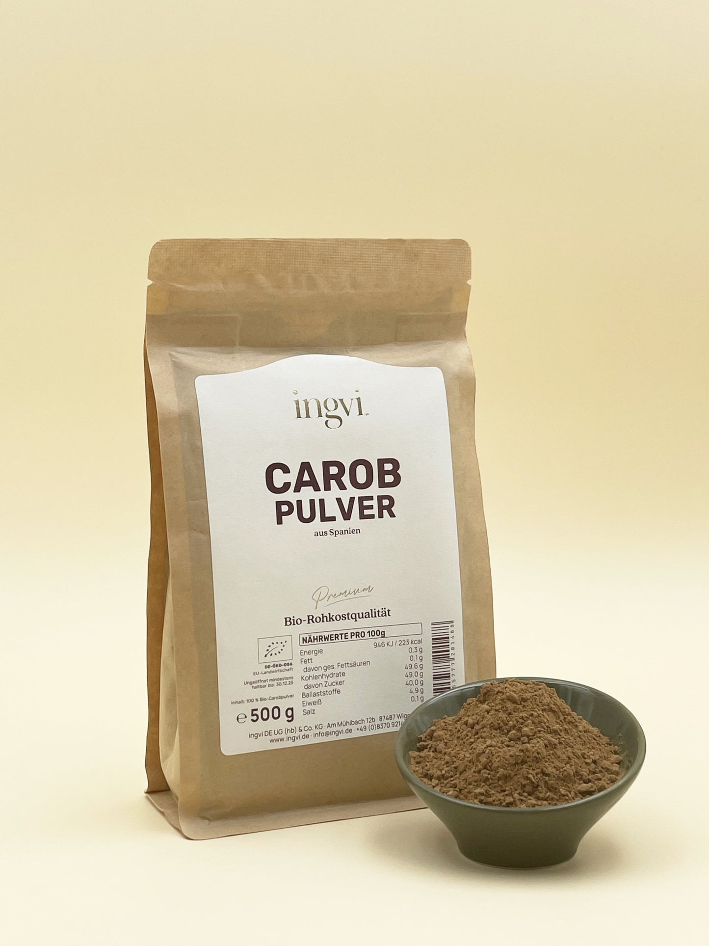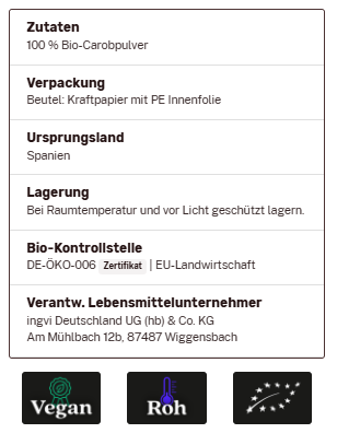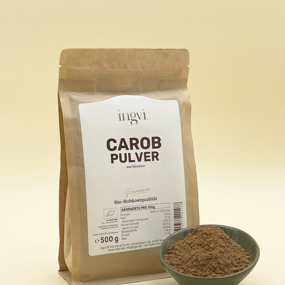 Carob Pulver, ingvi, Rohkostqualiät, Bio, 500g zum Warenkorb hinzufügen