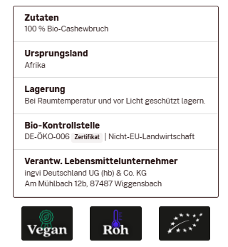 Cashewbruch handgeknackt, ingvi, Rohkostqualität, Bio 1Kg zum Warenkorb hinzufügen