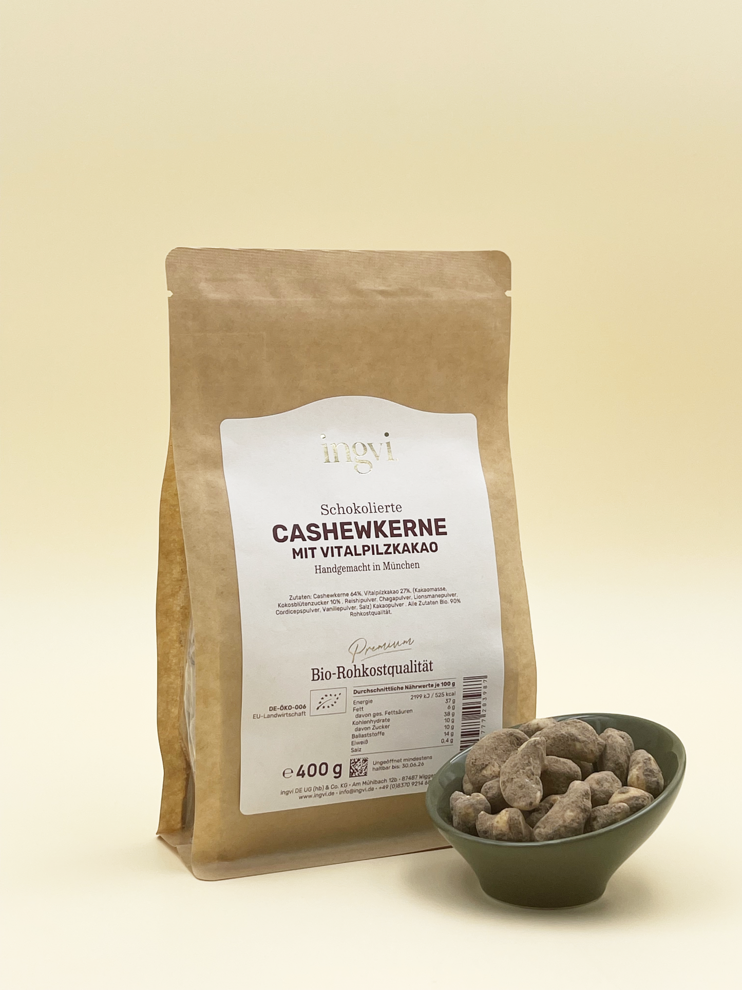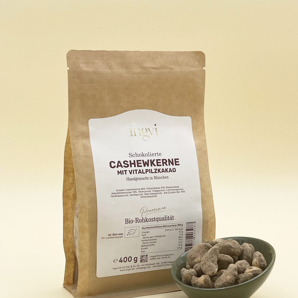 Cashewkerne mit Vitalpilzkakao, ingvi, Rohkostqualität, Bio, 400 g zum Warenkorb hinzufügen