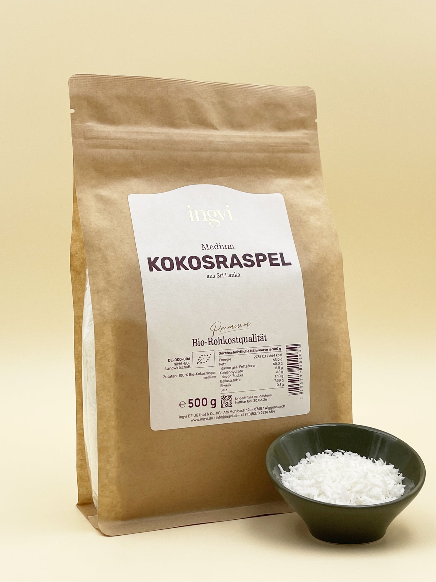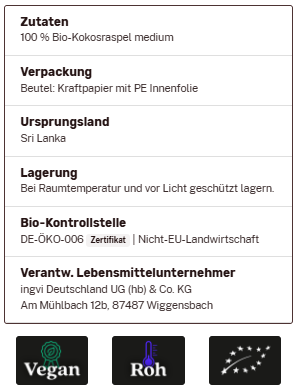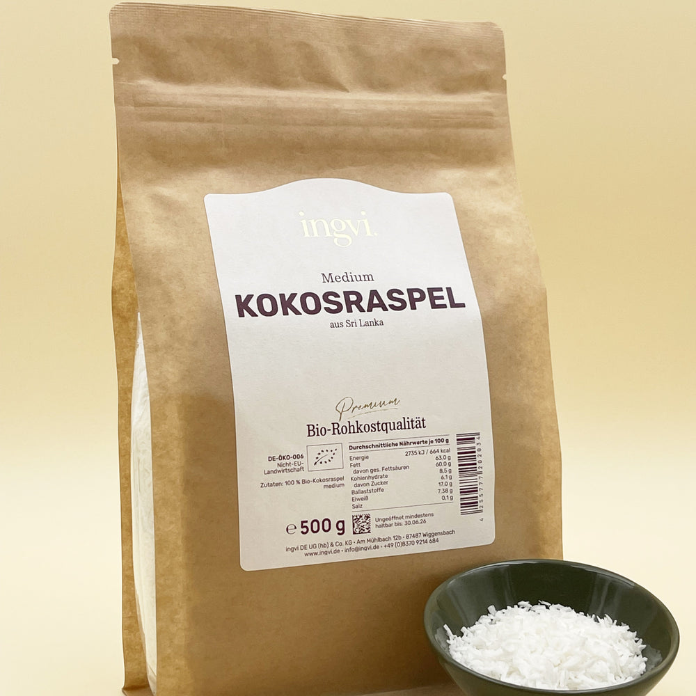 Kokosraspel, Rohkostqualität, Bio, 500g, ingvi zum Warenkorb hinzufügen