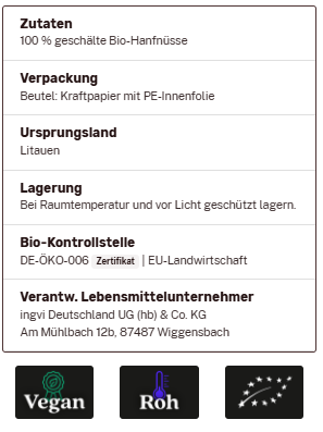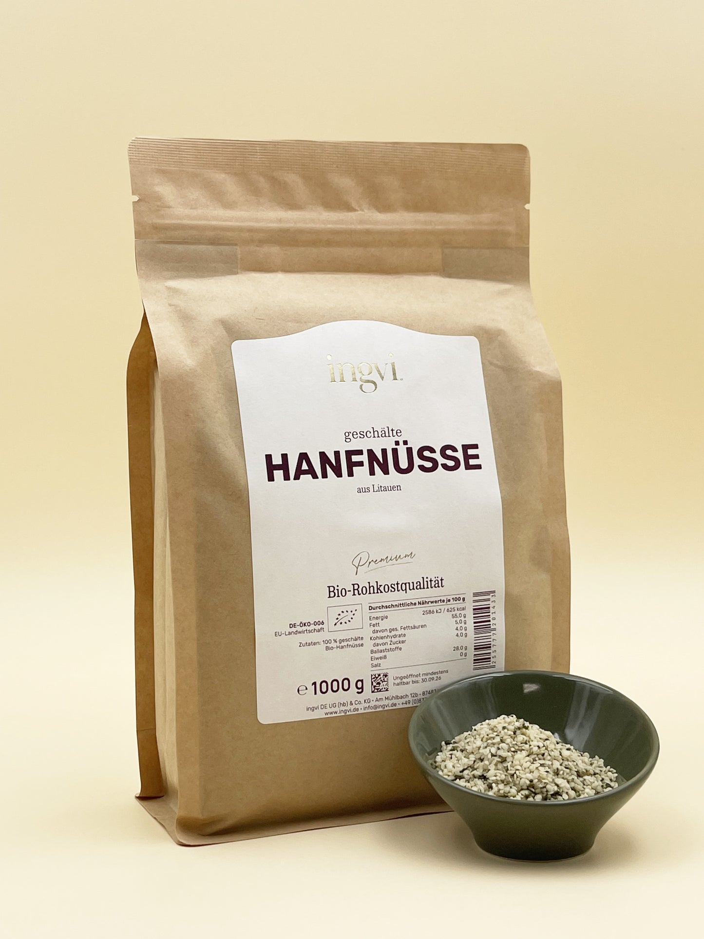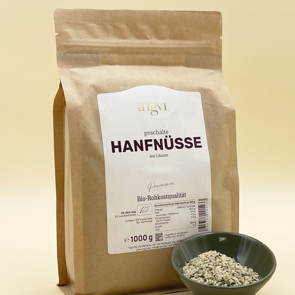 Hanfnüsse geschält, ingvi, Rohkostqualität, Bio, 1000g zum Warenkorb hinzufügen