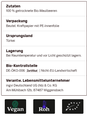 Maulbeeren getrocknet, Rohkostqualität, Bio, 400g zum Warenkorb hinzufügen
