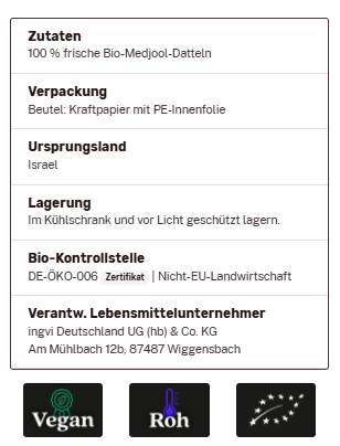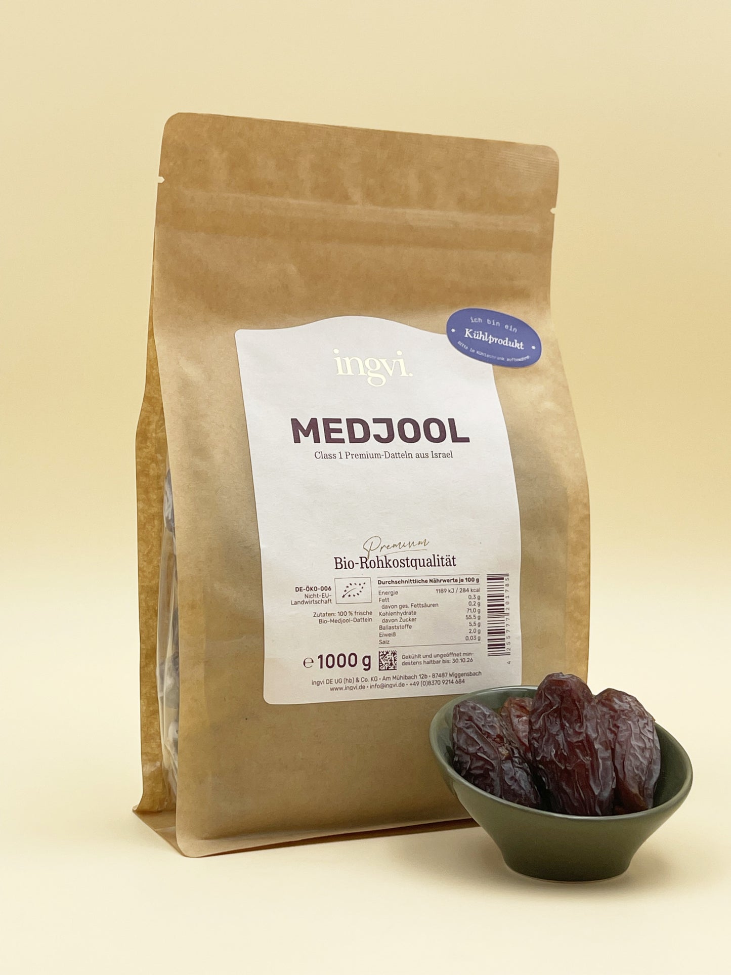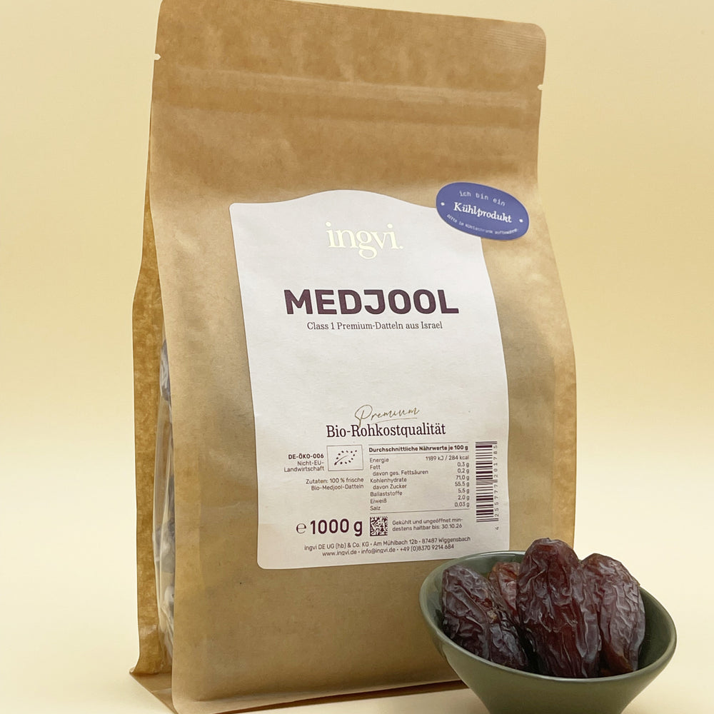 Medjool Datteln Class 1 Premium, Rohkostqualität Bio 1000g, ingvi zum Warenkorb hinzufügen