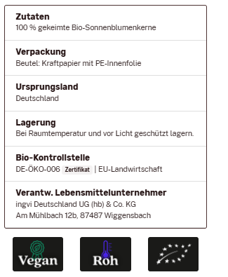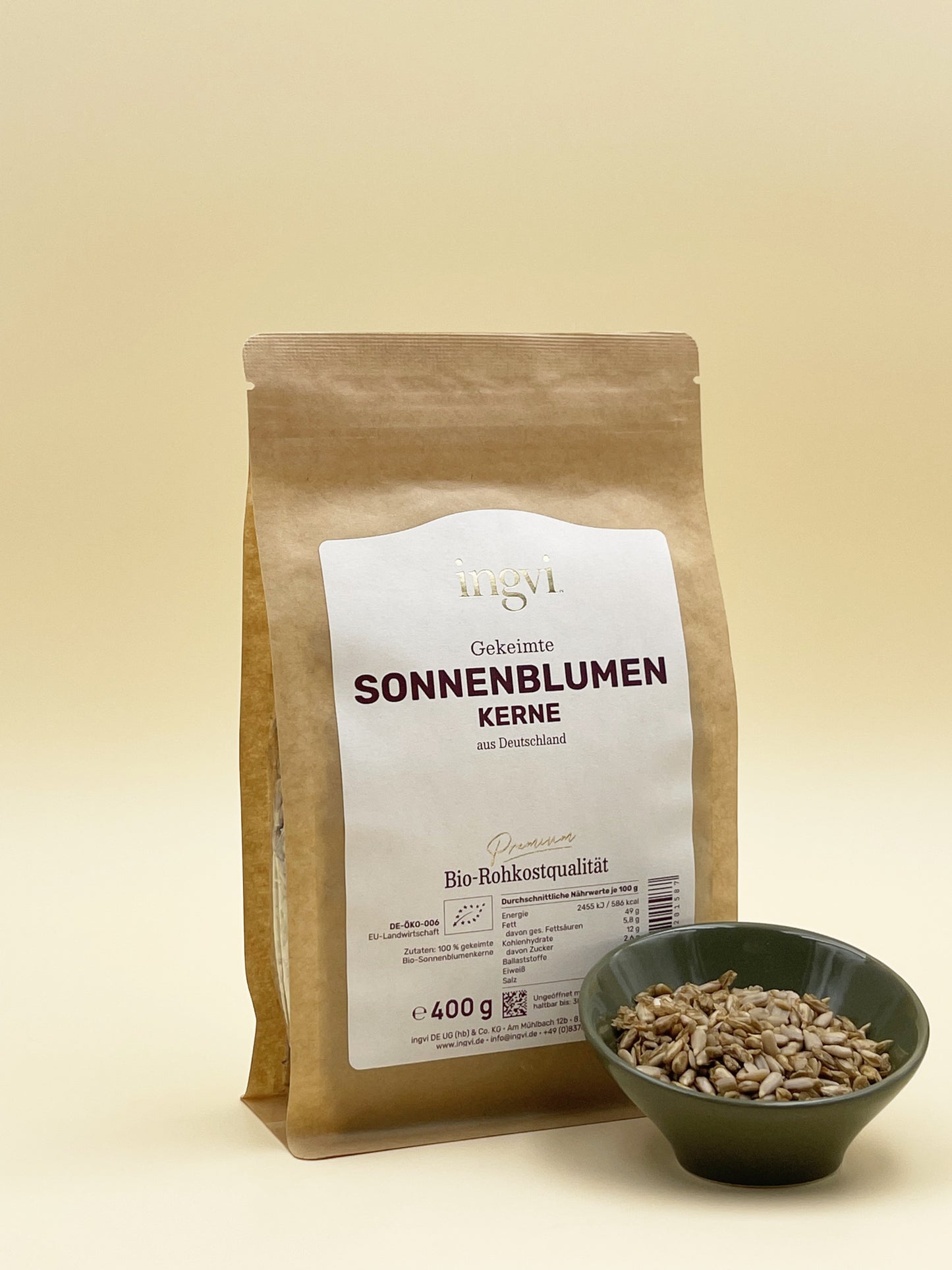Sonnenblumenkerne gekeimt, ingvi, Rohkostqualität, Bio, 400g zum Warenkorb hinzufügen