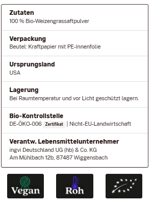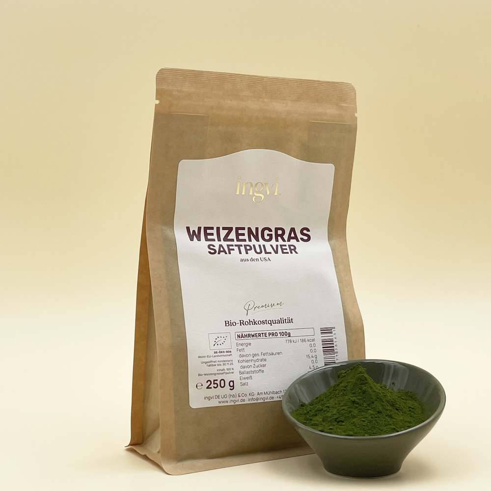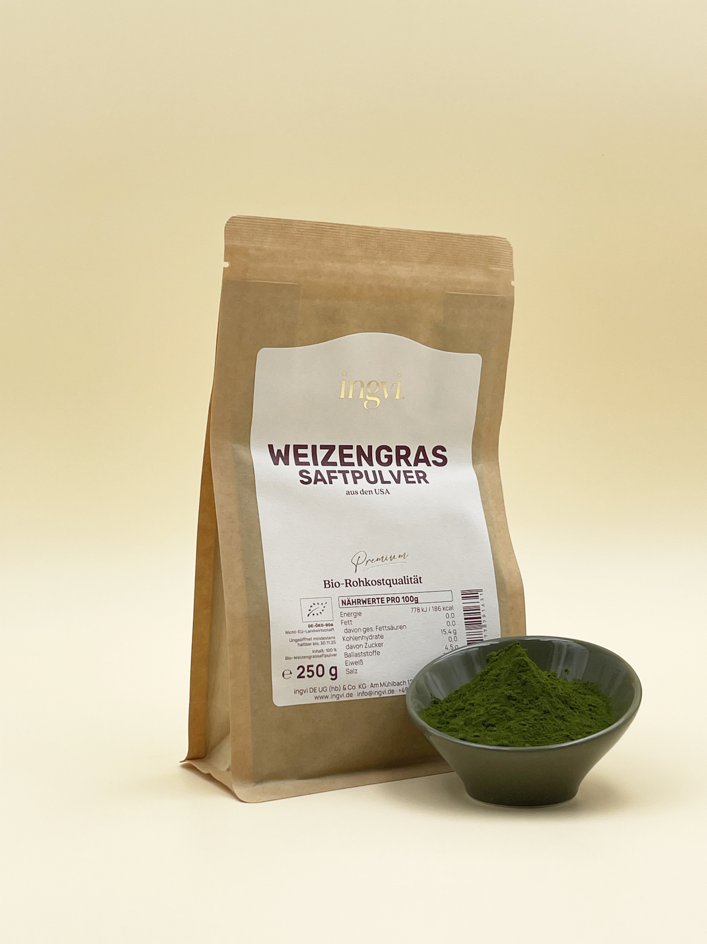 Weizengrassaftpulver, ingvi, Rohkostqualität, Bio, 250g zum Warenkorb hinzufügen