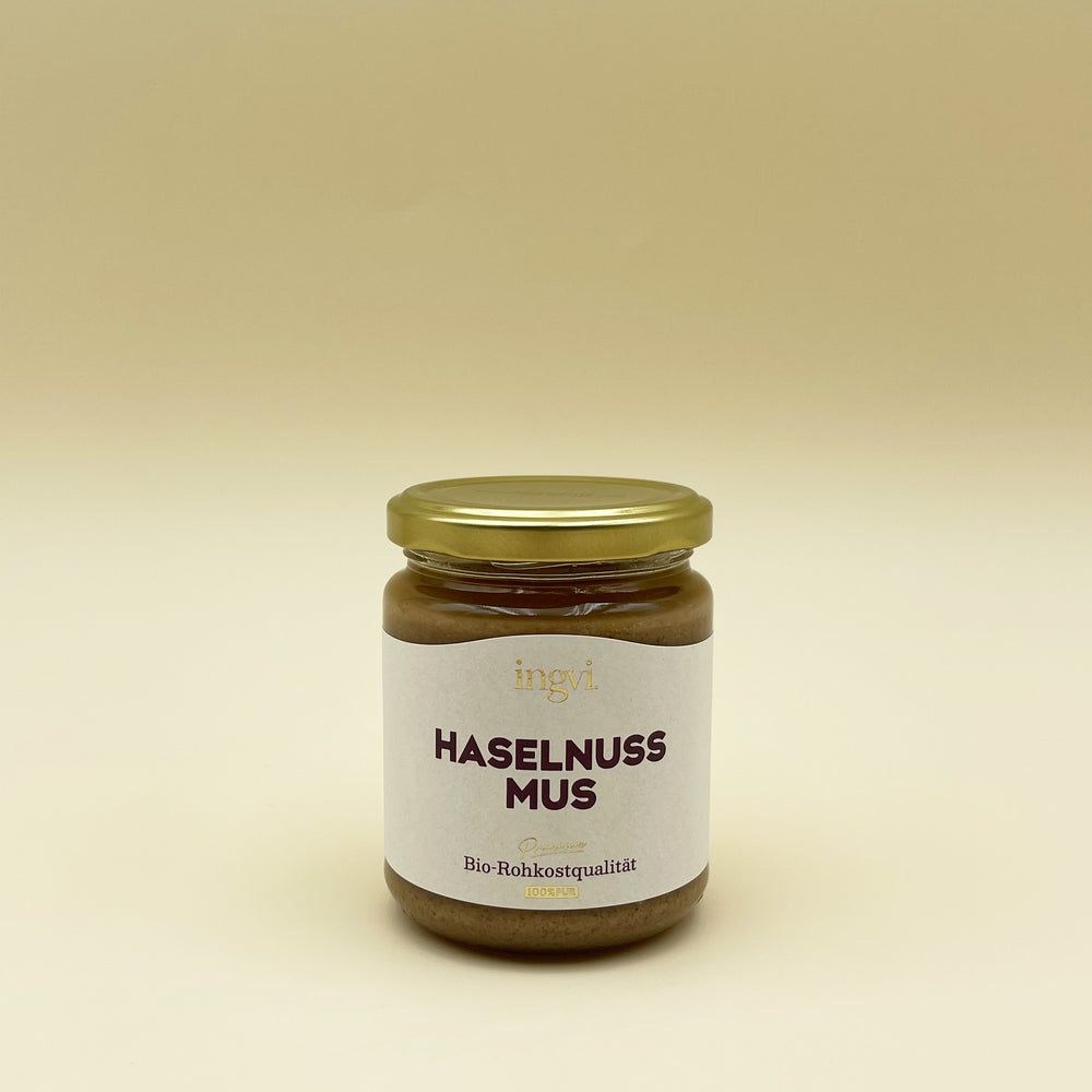 Das ingvi Haselnussmus in Rohkostqualität wird aus ausgewählten rohen, ungeschälten Bio-Haselnüssen aus der Türkei schonend unter 42°C hergestellt. Somit bleiben die wertvollen Inhaltsstoffe und der feine Geschmack beim Mahlvorgang vollständig erhalten.