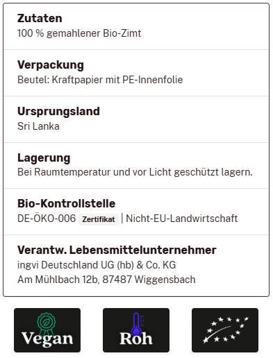 Zimt gemahlen Ceylon, ingvi, Rohkostqualität, Bio, 200g zum Warenkorb hinzufügen