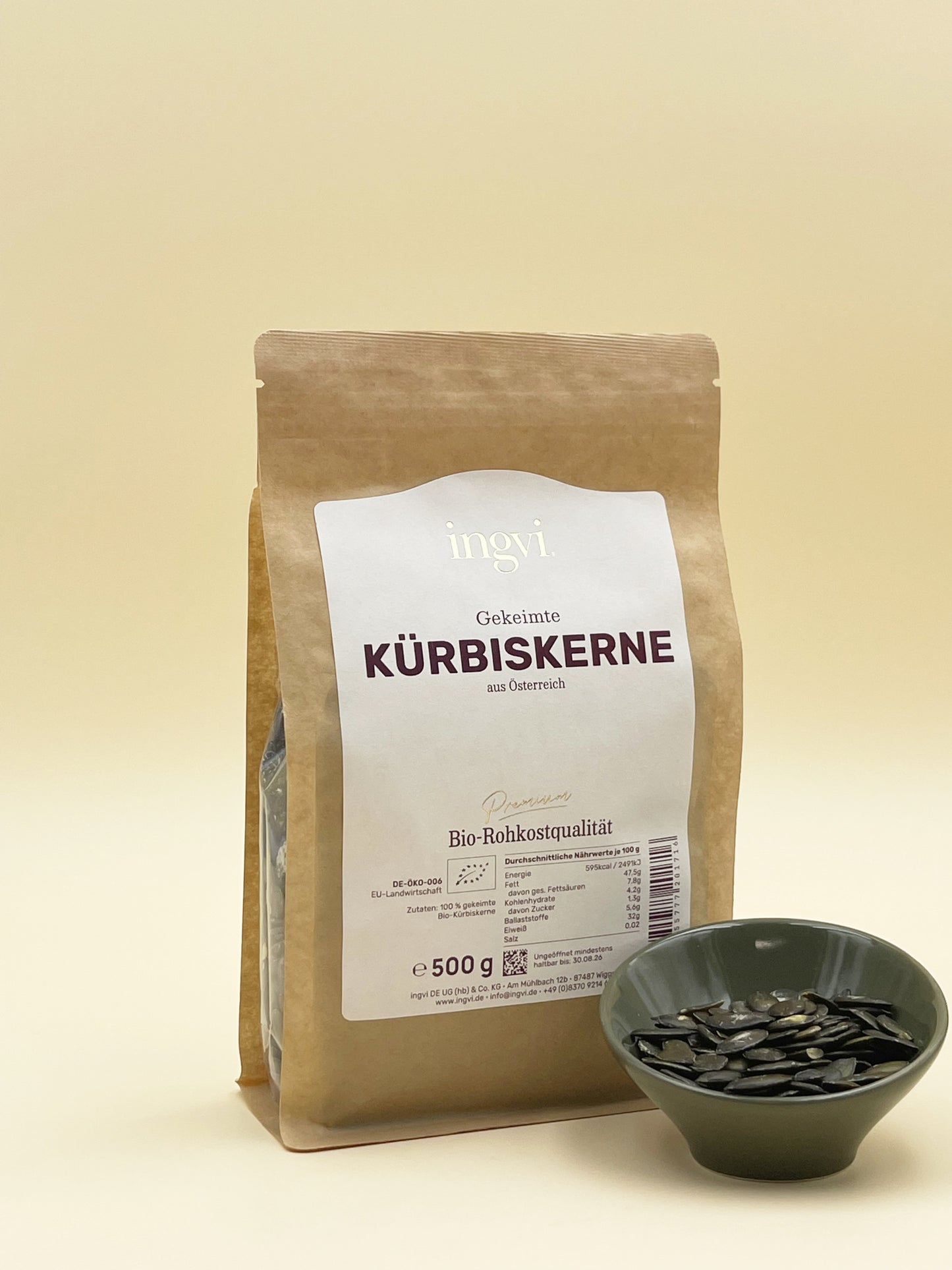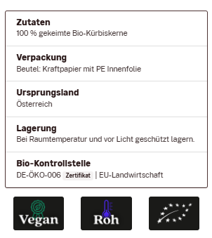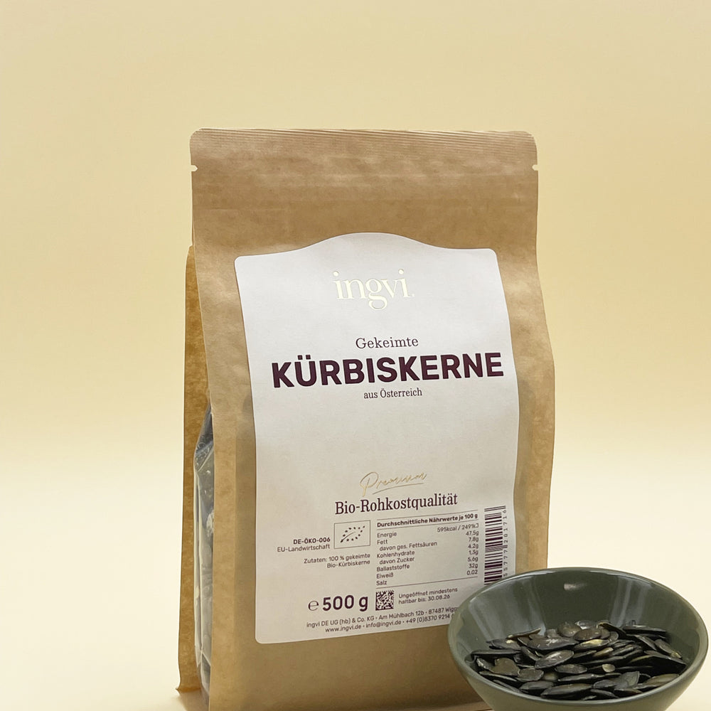 ingvi Kürbiskerne gekeimt, Rohkostqualität, Bio, 500g zum Warenkorb hinzufügen