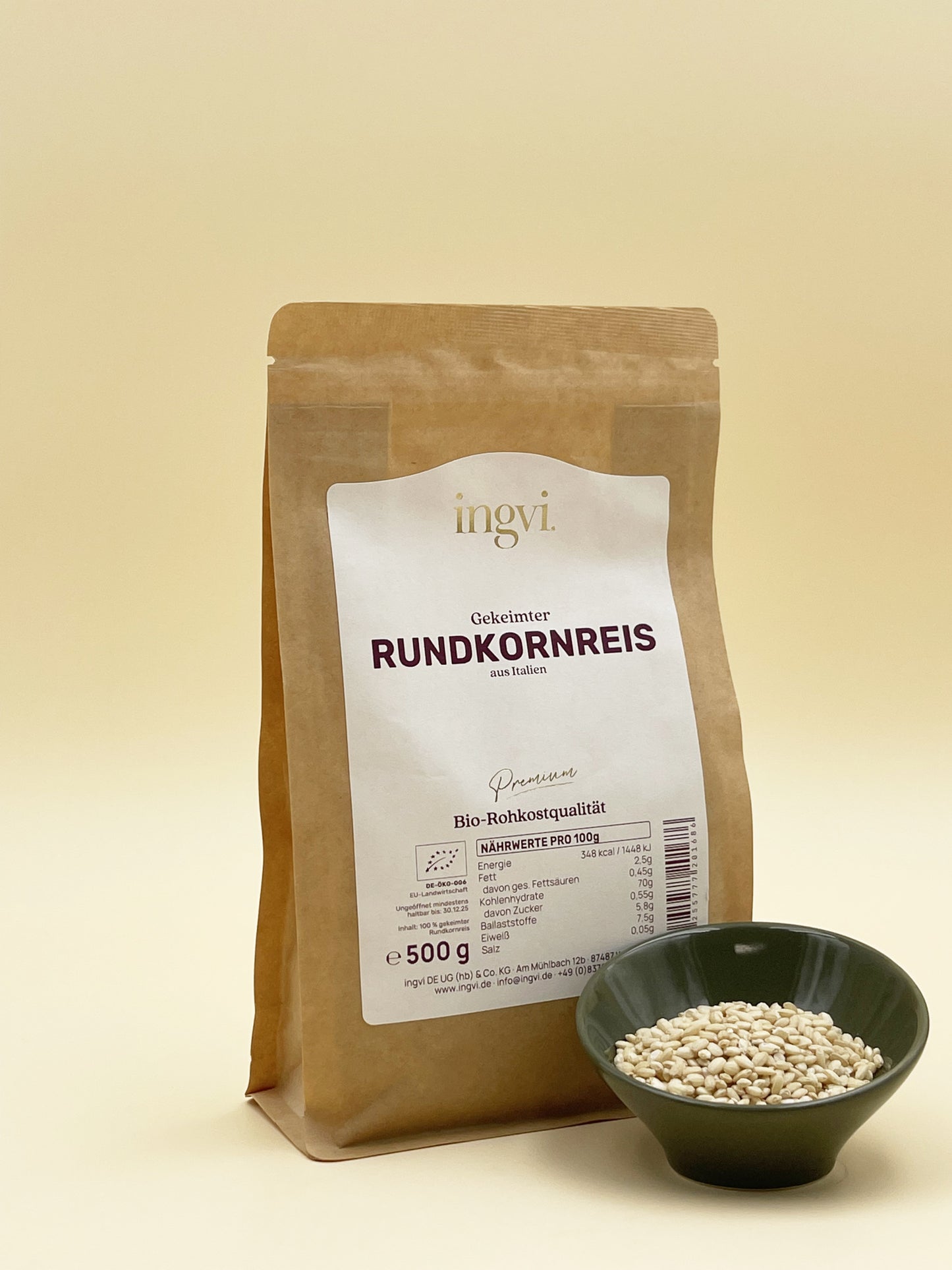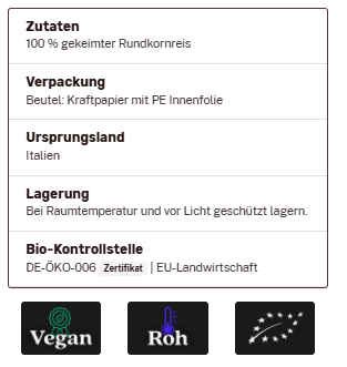 Rundkornreis gekeimt, ingvi, Rohkostqualität, Bio, 500g zum Warenkorb hinzufügen