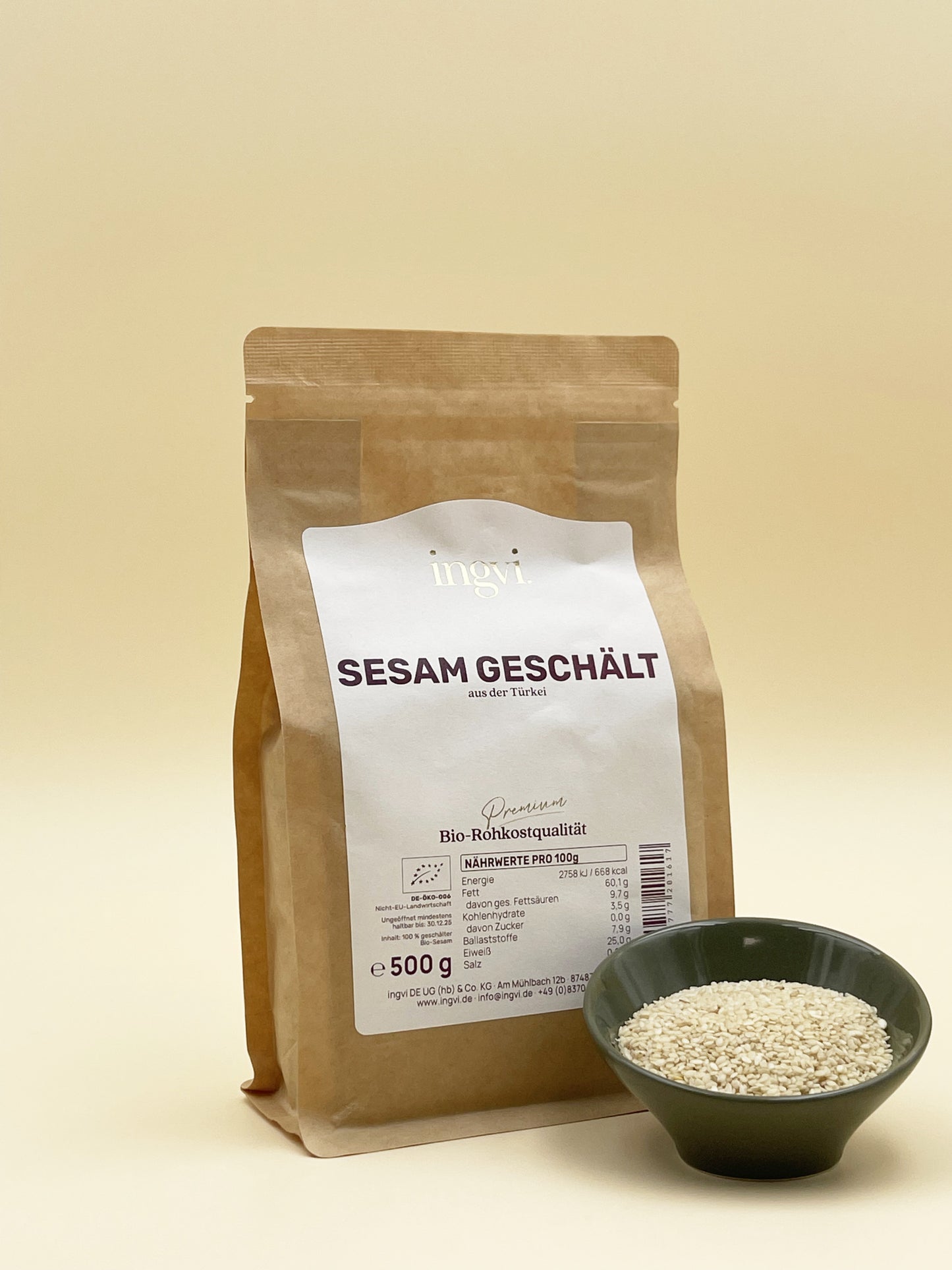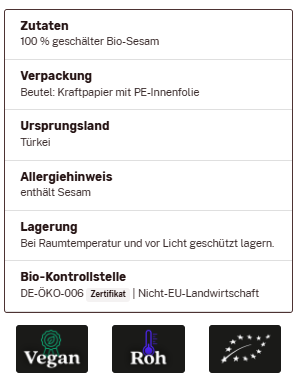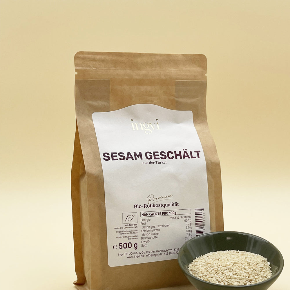 Sesam weiß geschält, ingvi, Rohkostqualität, Bio, 500g zum Warenkorb hinzufügen