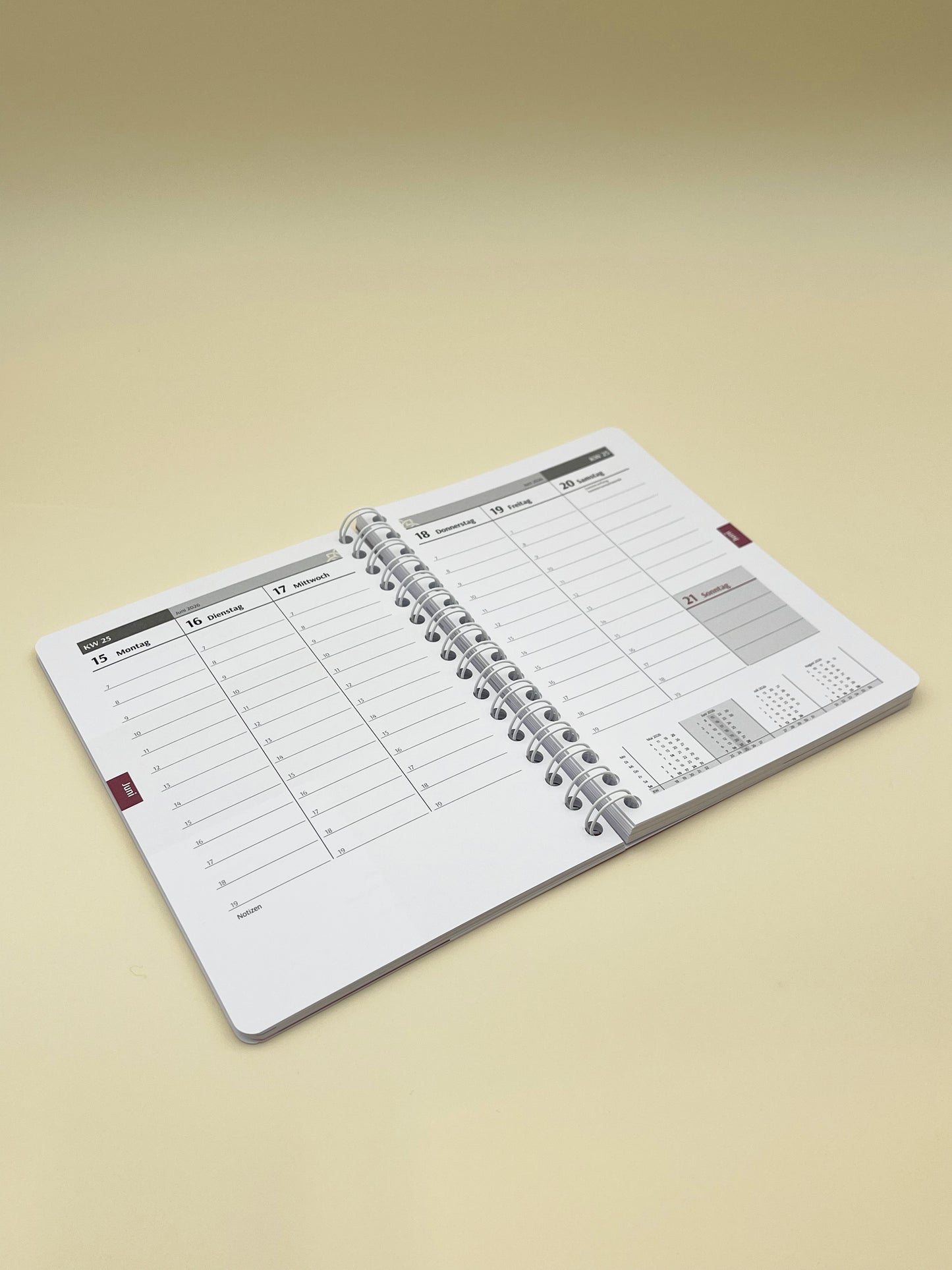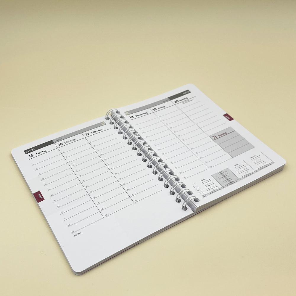 Verarbeitung: Wire-O-Bindung mit zwei abgerundeten Ecken – langlebig, angenehm in der Hand, stilvoll im Look